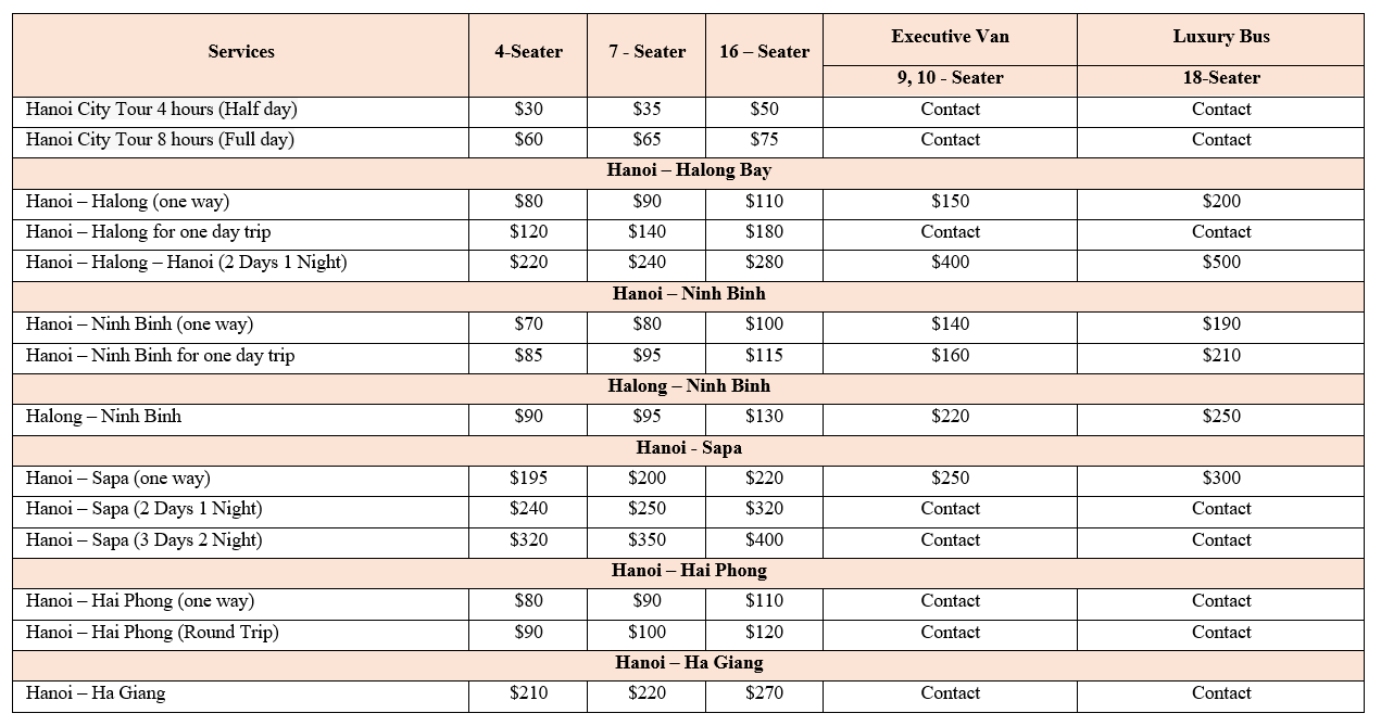 North Vietnam Transfer offers reliable private and shared car services from Hanoi to Ha Long, Sapa, Ha Giang, and Ninh Binh — safe, comfortable, and on time.